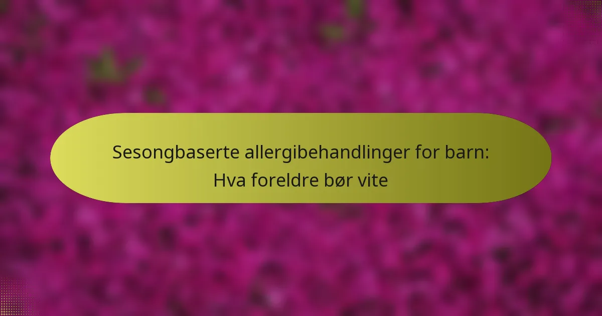Sesongmessige allergier, ofte kjent som høysnue, kan ha betydelig innvirkning på barns daglige liv ettersom immunforsvaret reagerer på pollen fra ulike planter. Foreldre har tilgang til en rekke behandlingsalternativer, inkludert reseptfrie legemidler og naturlige midler, for å hjelpe til med å håndtere disse symptomene effektivt. Å konsultere en helsepersonell er avgjørende for å sikre at de valgte behandlingene er trygge og passende for barnets spesifikke behov.